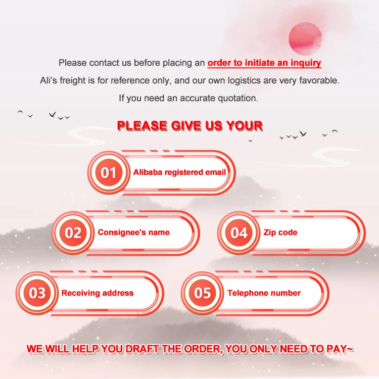 答: 对于新客户,你应该支付样品的成本; 对于老客户,你可以免费获得我们的样品。(备注: 如果有样本。)